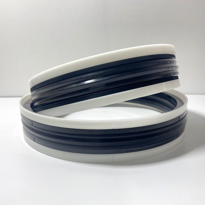 TPM składa się z pięciu części: centralną częścią jest guma nitrylowa, dwa pierścienie podporowe z poliestru i dwa pierścienie prowadzące z polioksymetylenu. Ta unikalna kombinacja generuje bardzo niskie tarcie w warunkach pracy pod wysokim ciśnieniem. Jest łatwy w montażu, wysoce odporny na zużycie, wysoce odporny na wytłaczanie i ma minimalne odkształcenia.
